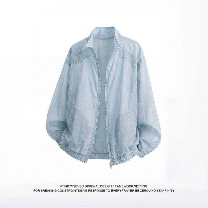V37美式透气网孔拼接轻薄时尚防晒衣男夏季紫色宽松休闲防晒外套